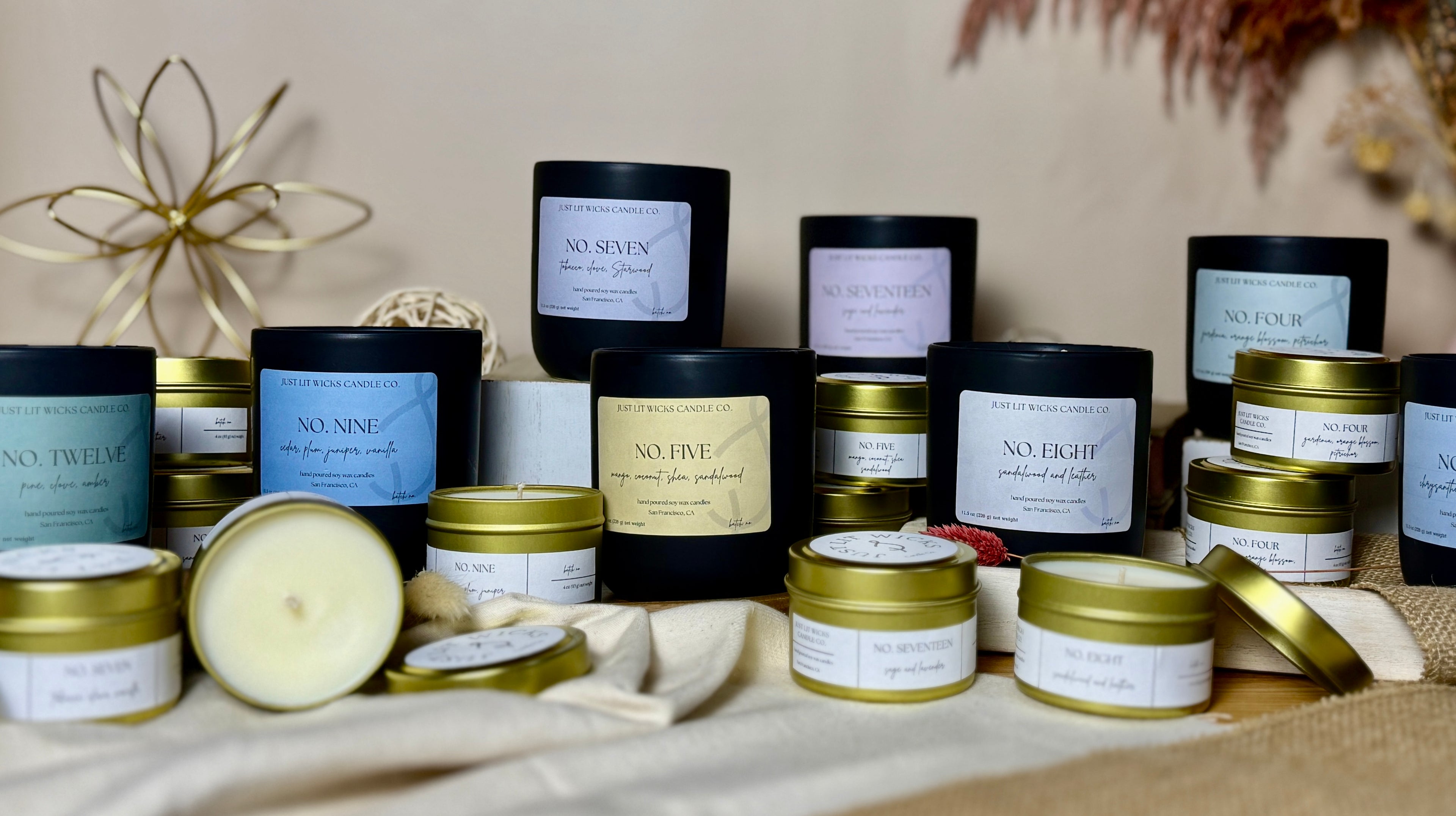 Small batch 100% soy wax candles with hand-blended scents from a woman-owned small business based in San Francisco, California.