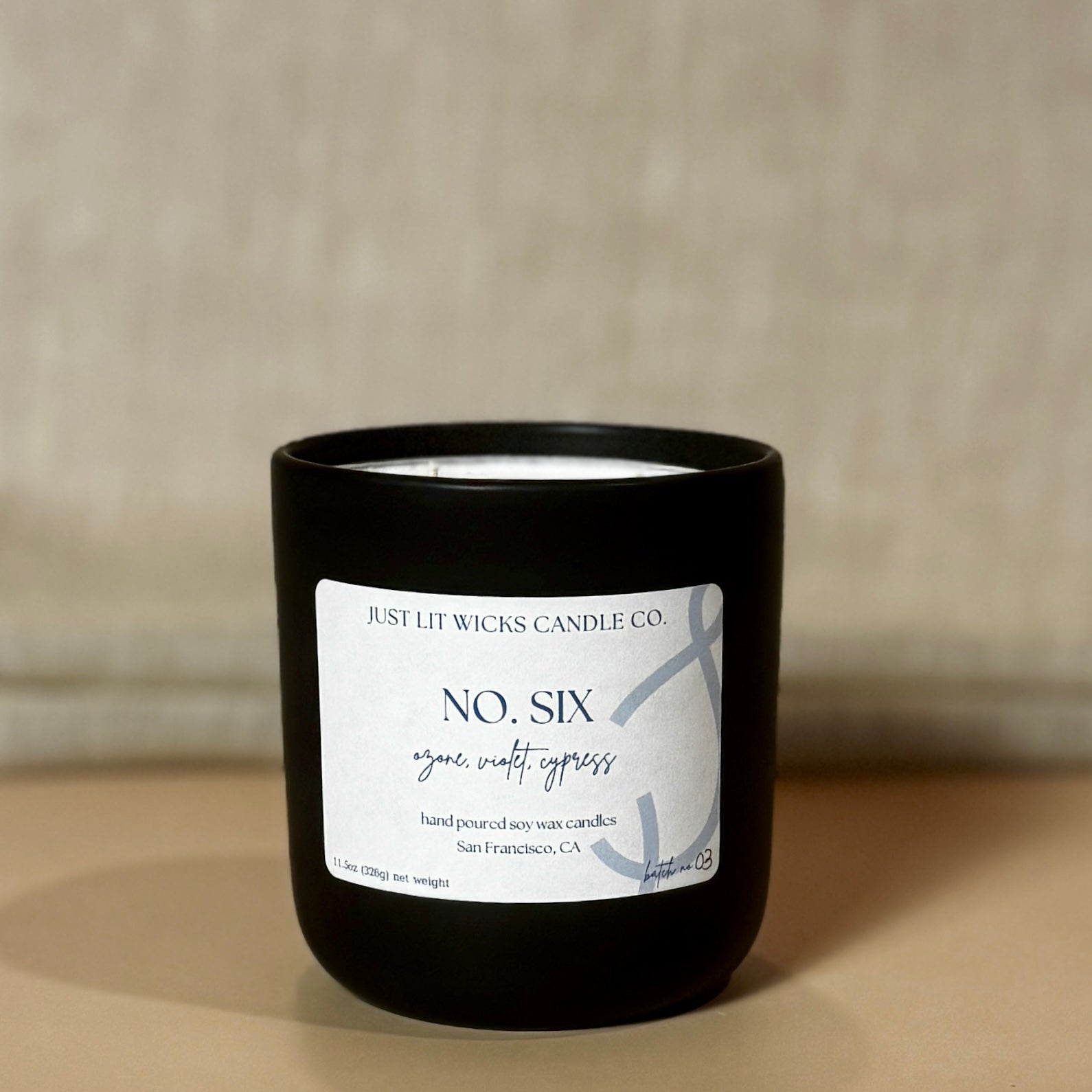 No. Six captures the uplifting spirit of a crisp ocean breeze blended with the delicate floral notes of violet and a refreshing hint of cypress. This clean and fresh fragrance fills your space with bright, optimistic energy, inspiring a sense of renewal and joy in every breath.