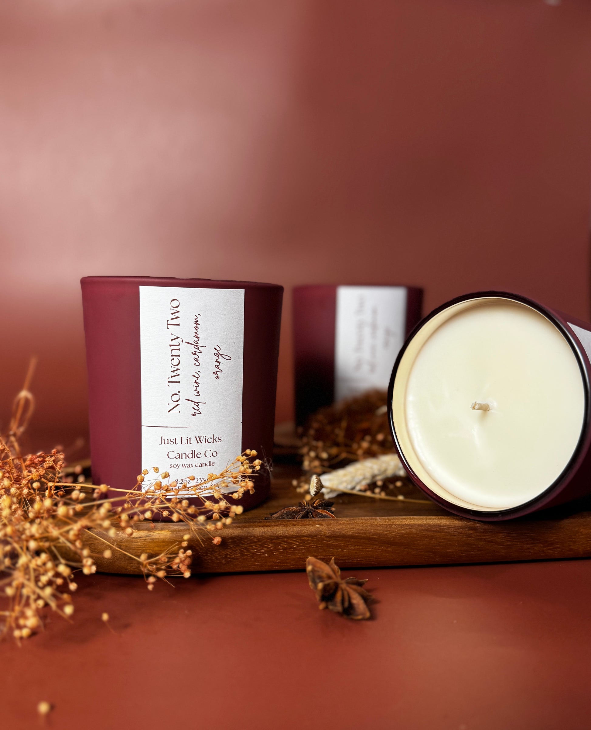 No. Twenty Two brings autumn vibes to life with a warm, cozy blend of cranberry, red apple, cardamom and oranges (think mulled wine vibes!). This intentional fragrance evokes nostalgic fall moments, creating a comforting atmosphere that invites you to slow down and savor the season.
